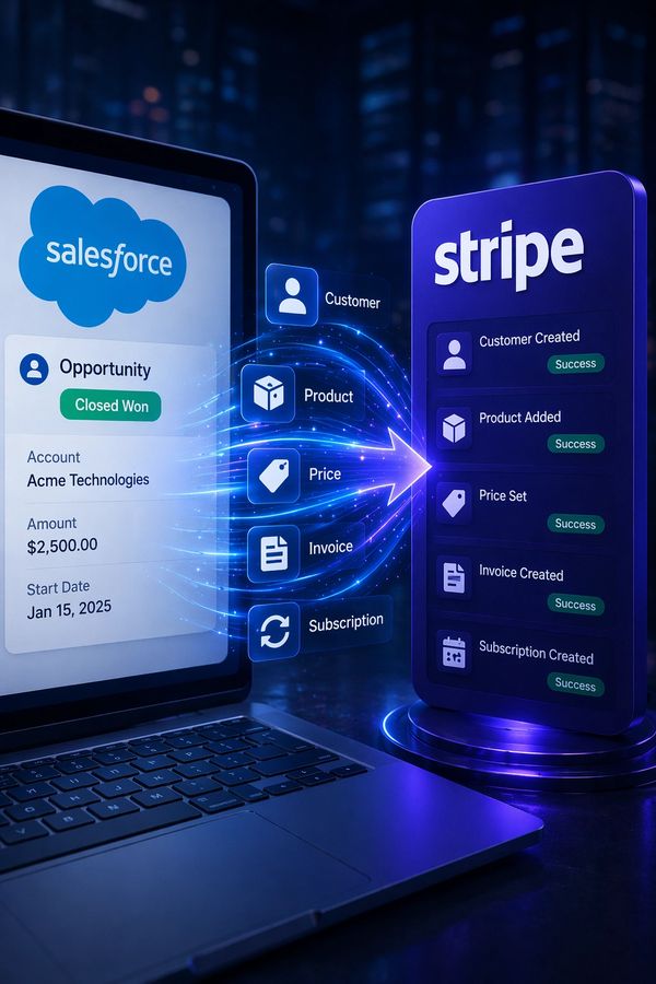 Your monthly fee covers fixes for API changes, security updates, and platform upgrades from Salesforce and Stripe, plus two integration modifications each month so both directions can evolve with your business. No surprise invoices, no drawn out implementation timelines, and no phantom software subscription bolted on top.